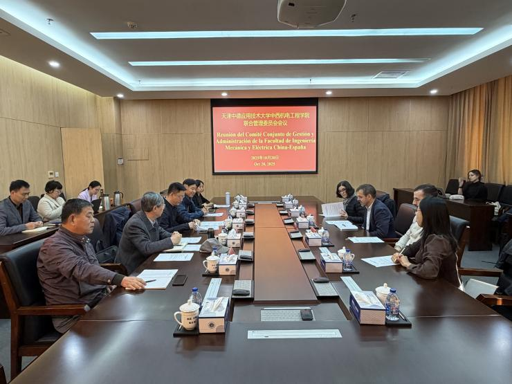 2025年10月20日上午9:00,天津中德应用技术大学中西机电工程学院联合管理委员会会议在A座109成功召开。会议由国际交流与合作处处长庞子瑞主持。天津中德应用技术大学副校长郭峰、机械工程学院党委书记张子桐、院长闫利文、中西中心党总支书记薛静等中方代表;西班牙IMH学院校长伊萨卡、本科部主任艾杜尼、中西中心西方主任阿谢尔和西班牙外教伊萨贝儿等西方代表共同出席会议。
