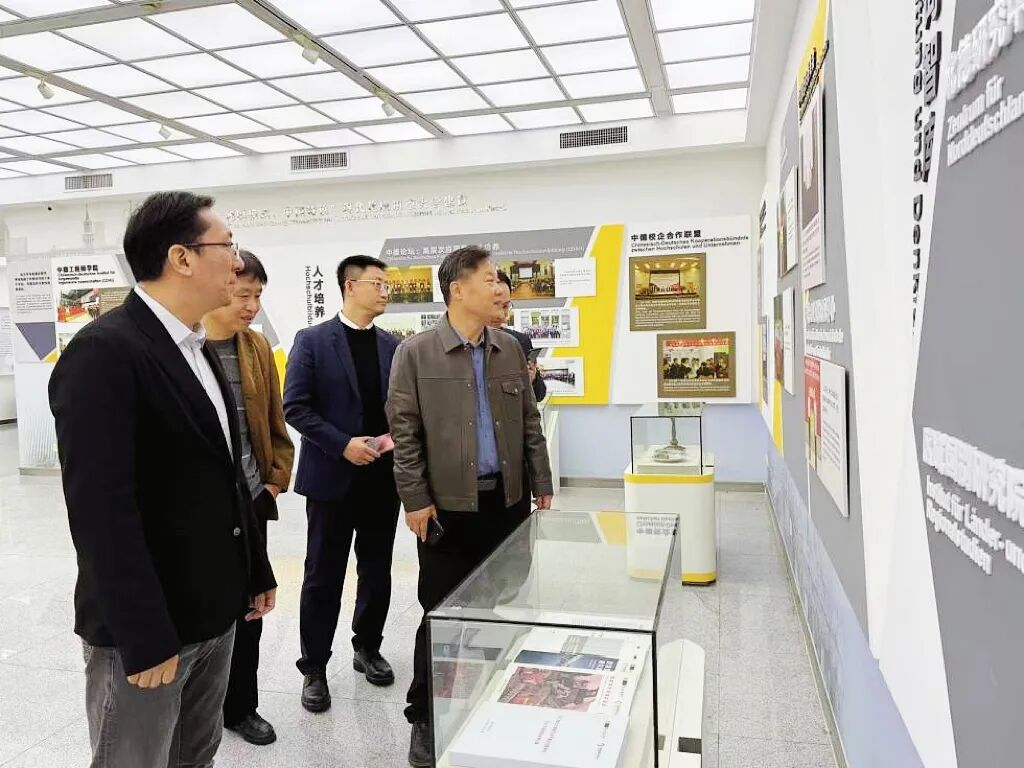 张宗旺一行还参观了浙江科技大学中德合作馆,通过实物展示、成果陈列等直观形式,深入了解了浙江科技大学40余年对德合作的发展历程、丰硕成果与特色亮点。